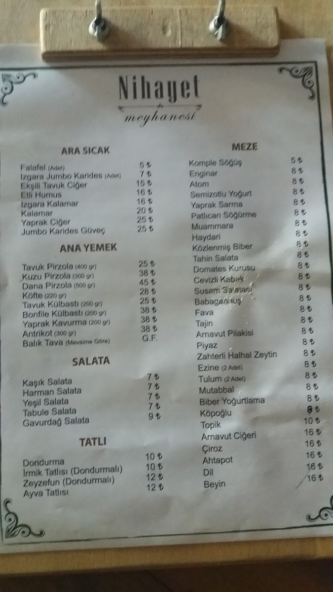 Overall, the menu at Nihayet Meyhanesi offers a balance of flavors, from light and fresh to rich and indulgent, making it an excellent destination for both casual dinners and special occasions.